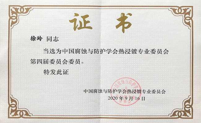 中国腐蚀与防护学会热浸镀专业委员会第四届委员会委员